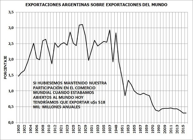 siglo XX. Las exportaciones Argentina representaban entre el 2 y el 3 por ciento