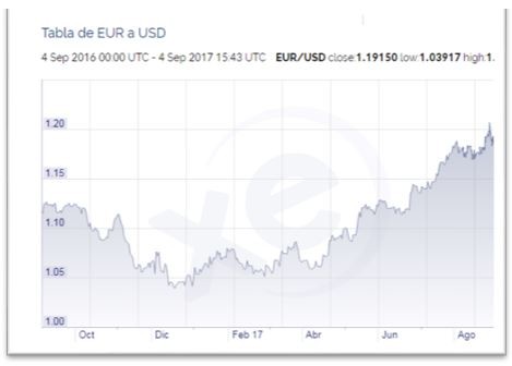Frente al euro, la caída es notoria. El gráfico lo muestra claramente.
