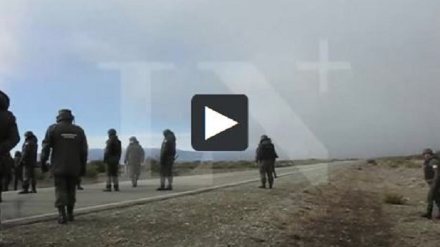el avance de unos 30 gendarmes que repelen los piedrazos de un grupo de mapuches