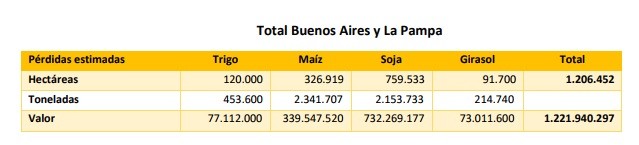 Considerando la situación actual de los campos, se estima que 1,2 mill/has. serían el piso de las pérdidas de superficie, ya que por más que las condiciones climáticas mejores significativamente, hay lugares que no lograran esa mejora a tiempo para poder sembrarse.
