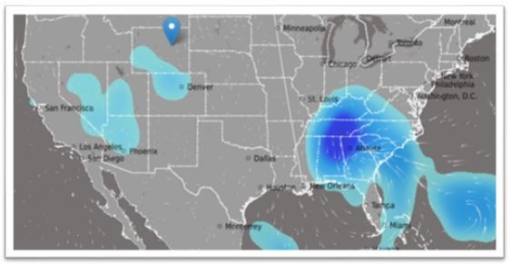 Como se puede apreciar, el avance hacia el norte de la tormenta, sigue sin parar. Ya se aproxima a la zona del Mid West, donde los cultivos podrían verse afectados seriamente. Está a escasas horas de Chicago.