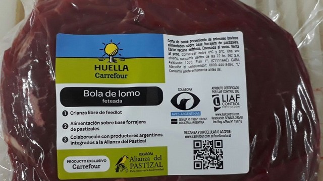 Carrefour y LIAF Control trabajan en conjunto para presentar en góndola la primera carne argentina proveniente de animales alimentados sobre base forrajera de pastizales dentro del Programa Huella Carrefour. El objetivo del proyecto es colaborar con el desarrollo de una ganadería sustentable y ofrecer al público una selección de cortes vacunos de calidad envasados al vacío. Se trata de un programa pensado para lograr la trazabilidad completa desde el campo hasta la góndola.