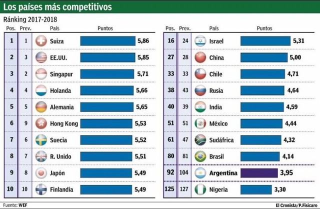 En base a esta calificación, el WEF ubica a la Argentina como un país "en