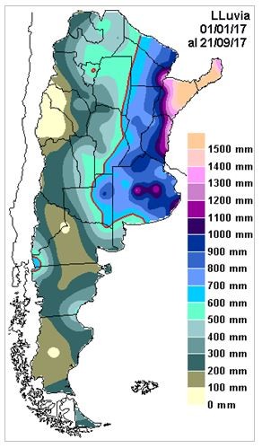 Debemos remarcar también el este entrerriano y buena parte de Corrientes y Misiones con lluvias muy destacadas, aunque también son zonas con mejores posibilidades de drenar los excesos. Esta carga pluvial que se arrastra desde el inicio del año, no se está reflejando en el paso del mes de septiembre. Las lluvias en el centro norte de la Mesopotamia son temporariamente modestas. La semana entrante parecen activarse lluvias sobre Santiago y el oeste de Chaco, apartando la inestabilidad sobre el este. Este tipo de situaciones suelen aparecer en el norte, cuando el centro del continente comienza a calentarse. Se desarrollan sistemas de baja presión sobre el NOA, que terminan forzando un desplazamiento de las lluvias a zonas mediterráneas. Por lo pronto las reservas son buenas en el centro norte de Corrientes y un período relativamente modesto de precipitaciones es posible de sobrellevar.