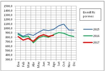 producción nacional se ubicó entre 1 y 2% por debajo que el año anterior. Y las