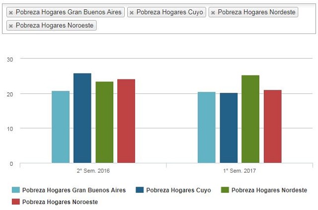 Según la Encuesta Permanente de Hogares (EPH) del Indec, la pobreza se redujo 1,7 puntos, del 30,3% en el segundo semestre del año pasado al 28,6% en el primero de 2017. Como consecuencia de esa baja, 636.348 argentinos salieron de la pobreza. Sin embargo, casi un tercio de la población aún está por debajo de esa línea. Si se hace una proyección al total país, hay 11.359.427 pobres. En tanto, la indigencia creció en el mismo período una décima, de 6,1% a 6,2%, por lo que se sumaron 69.075 personas a las 2.470.844 que tienen problemas para conseguir lo más básico: alimento.