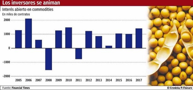 El interés abierto la cantidad de contratos de commodities que permanecen sin cancelar al finalizar la rueda de operaciones creció en las bolsas de futuros este año. Desde el petróleo crudo hasta el aceite de soja, el tamaño del mercado ha aumentado en casi 1,4 millones de contratos en los primeros nueve meses de 2017, la mayor cifra en siete años.