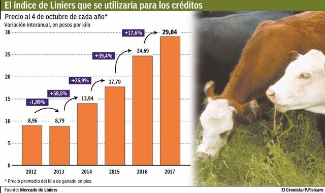 David Miazzo, Economista Jefe de la institución explicó a El Cronista que lo distinto de esta herramienta tiene que ver que en vez de que la entidad bancaria preste pesos más la tasa de interés, como un crédito normal, se presta en base a kilos de ganado que se proyectan producir. El valor se actualiza todos los meses, con una tasa de interés que se estima cercana al 5% (la que terminará definiendo cada banco).