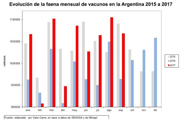 En septiembre se despacharon a faena 1,07 millones de animales, 3% menos que en agosto pero 11% más en la comparación interanual. Si se toma la faena promedio diaria, para tener en cuenta el número de días hábiles, se verifica 1% de aumento en relación a agosto y un sólido 16% de incremento frente a un año atrás.