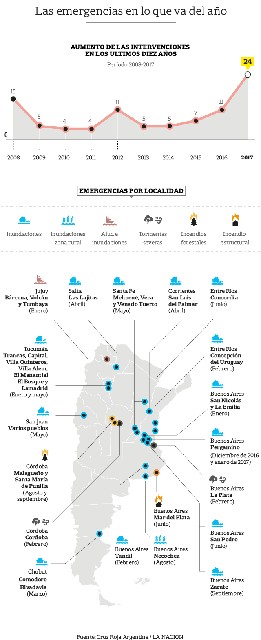 ¿Hubo más temporales, aludes, caída de granizo, crecidas y desbordes de ríos y arroyos que otros años? Para Mauricio Saldívar, meteorólogo y especialista en gestión del riesgo en desastres, lo que ha variado no es la intensidad de los eventos climáticos, sino que se profundizaron las consecuencias. "Hay que tener presente que estamos en uno de los ciclos húmedos que afectan al país cada 50 años, en promedio, y la oleada de eventos extremos que se sucedieron este año no necesariamente está vinculada al cambio climático. La mayoría ha respondido a la natural variabilidad del clima -señala Saldívar-. Los desastres son una construcción social. Hemos modificado el uso del suelo, nos fuimos a vivir cerca de las costas de ríos y mares y entubamos arroyos. Además, está comprobado que en estos últimos años las napas han subido, y por eso el suelo tiene menor capacidad de absorción".