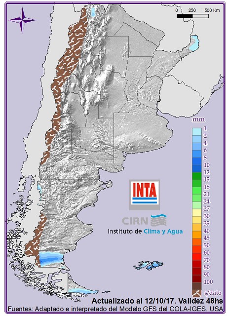 En el centro y norte patagónico se espera vientos fuertes del oeste que rotarán al sudeste con nubosidad variable y posterior descenso de las temperaturas. Habría tiempo inestable con algunas lluvias aisladas sobre el extremo sur.