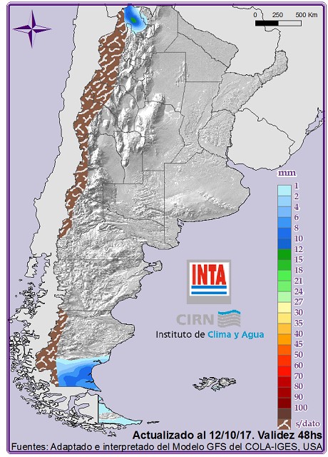 En el extremo norte se prevé aumento de la nubosidad y tiempo inestable sobre Jujuy. En el sur de la reg. patagónica, se registrarían vientos moderados del oeste con nubosidad en aumento y posibles lluvias.