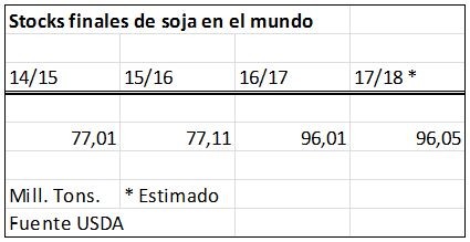 En el gráfico anterior puede advertirse claramente que la previsión sobre stocks finales en el mundo para el año que viene quedaría, prácticamente, en igual nivel que el actual.