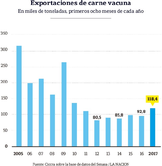 Produciendo animales más pesados, podrá quedar disponible cada vez más carne para atender tanto el mercado interno como la exportación. Hoy, el mercado externo se lleva el 9% de la producción. Llegó a representar el 20% cuando el gobierno anterior, en 2006, comenzó a intervenir sobre el mercado de carnes.
