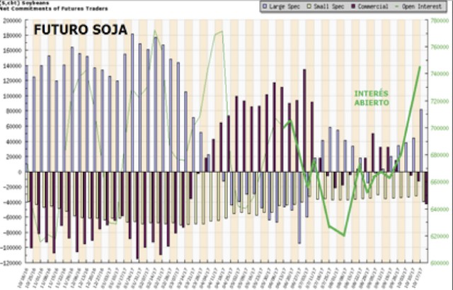 Al martes 17 de octubre, el precio de la soja mostró cierta debilidad en superar la zona de resistencia sugerida en torno a los 985-1000 centavos, sin embargo se observó un fuerte ingreso comprador por parte de los fondos especulativos, principalmente tras conocerse el último reporte de USDA. Este incremento comprador neto de los fondos ha ido acompañado de una importante suba del interés abierto, quizás algo inusual para esta fecha, siendo que estamos próximos de finalizar el contrato del mes de noviembre/17.
