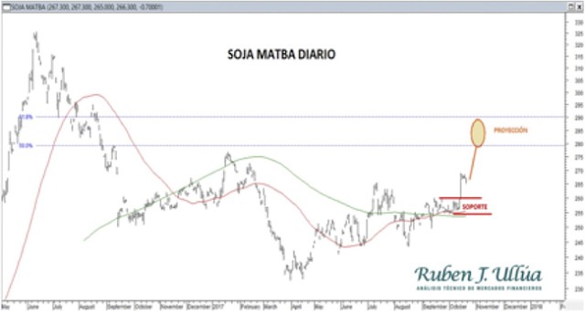 En relación a lo propuesto, recortes como el actual deberían considerarse menores y con soporte en la zona de 260-255 dólares para finalmente luego el avance de soja continúe su curso.