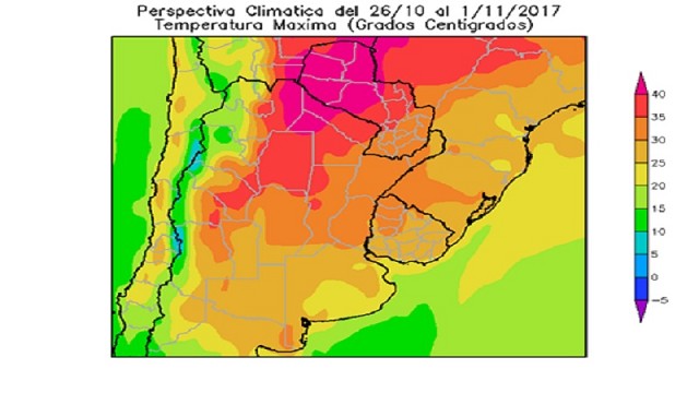 El nordeste del Paraguay, el este del NOA, el oeste de la Región del Chaco, el noroeste y nordeste de Córdoba y el noroeste de Santa Fe, observará temperaturas máximas superiores a 35°C, con focos con valores superiores.