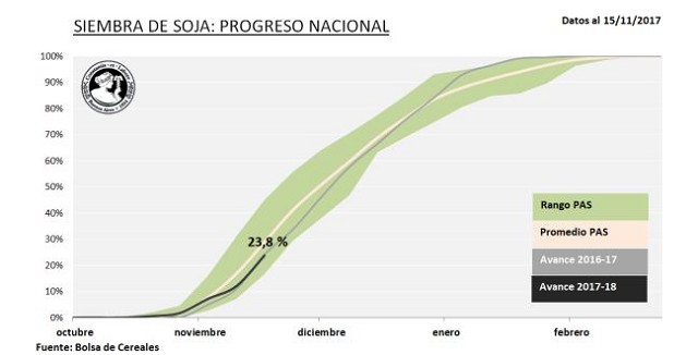 En solo siete días se incorporaron más de 2,1 millones de hectáreas, elevando el avance naciona al 23,8 % del área prevista. La mayor actividad continúa concentrada en el centro-este de la región agrícola nacional y lentamente se va expandiendo hacia el sector sur, en donde el progreso de las sembradoras continúa entorpecido por excesos hídricos en diferentes sectores de Buenos Aires y La Pampa.