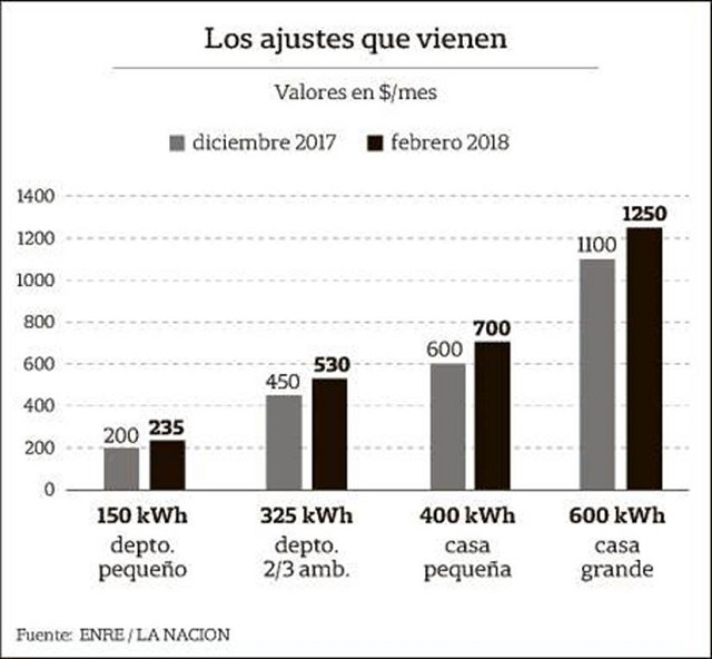 Según Cristina Tonnelier, del ENRE, el ente que regula el sector eléctrico, un usuario que consume 150 kW/h por mes pagará en diciembre una factura de $ 200. En febrero, en tanto, ese número trepará hasta los $ 235. En todos los casos, tanto en las concesiones de Edenor y de Edesur, como en el resto del país, las subas de este período se dividirán en dos etapas (diciembre y febrero).
