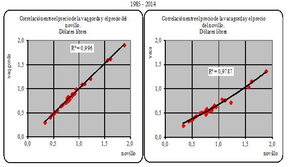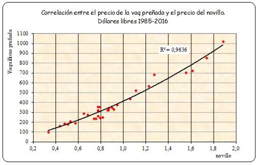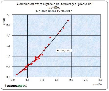 el ternero (expresado en dólares libres) en función de los correspondientes