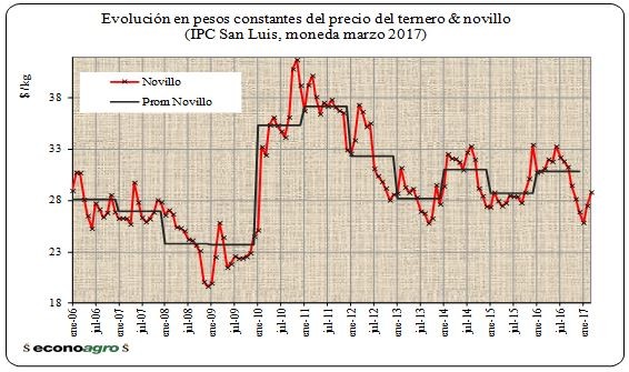 novillo gordo, corregidos por el índice de precios al consumidor de la provincia