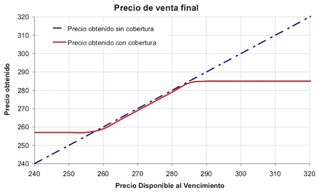 En esta estrategia mejoro piso, pero resigno una corrida de precios por encima de los de los 285 u$s/tns (que no deja de ser un muy precio de venta) sobre la posición de mayo