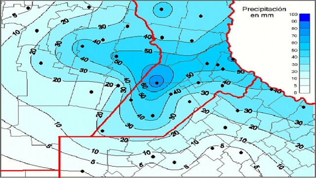 Hubo lluvias en el centro de Buenos Aires, se tratan de montos de 5 hasta 30 mm. El sureste bonaerense recibió las mayores descargas con lluvias de 30 a 80 mm. La provincia de Entre Ríos, recibió interesantes ofertas de agua en la franja este. Los acumulados estuvieron entre los 30 y los 50 mm. El sureste cordobés recibió algunas lluvias muy variables entre los 30 y los 80 mm.