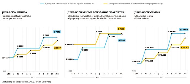 -La fórmula que se aplica desde 2009 se basa en la evolución de los salarios y de la recaudación de los recursos tributarios con los que se pagan parte de las jubilaciones (la forma de financiamiento cambiaría con la reforma tributaria). La fórmula propuesta contempla el 70% de la variación trimestral del índice de inflación y el 30% de la evolución del índice salarial denominado Ripte.