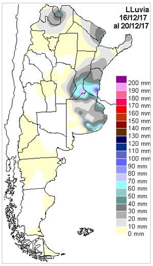 Se viene observando una persistencia favorable de las masas de aire tropical. Está lloviendo muy bien en Paraguay y zonas del Mato Grosso por lo cual, de mantenerse la circulación del noreste, deberíamos seguir recibiendo masas de aire húmedo, sosteniendo un patrón pluvial que da muestras de mejora. Las grandes lluvias que se observan en Brasil y Paraguay, no se condicen con la presencia de La Niña en el océano Pacífico, por lo cual vemos como poco influyente a este fenómeno sobre la región pampeana. La reticencia de las precipitaciones sobre el sector mediterráneo parece ser más bien una cuestión de escala regional y que en el corto plazo debería encontrar soluciones.
