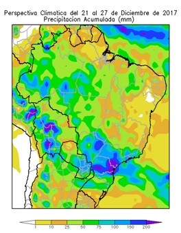 Desarrollo del pronostico agropecuario del 21 al 27 de diciembre del 2017 para Brasil