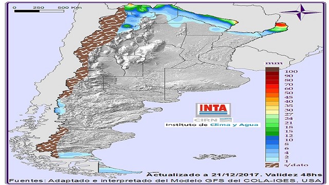 Continúan las buenas condiciones meteorológicas sobre el centro y norte argentino, con temperaturas en ascenso. Buena insolación sobre el centro del país y cielos nublados sobre el norte argentino con algunas precipitaciones sobre el NOA y Misiones. Producto de un sistema de mal tiempo se prevé para el sur del país tiempo inestable con precipitaciones sobre el oeste y sur de la región.