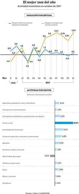 décimo mes del año, la actividad económica creció 5,2% en relación con el mismo