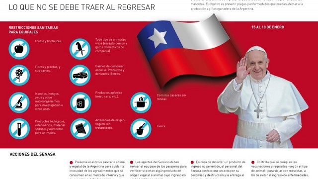 Se estima que más de 1 millón de argentinos, cruzarán la frontera con Chile para participar de actividades religiosas en el marco de la visita del Papa Francisco a las ciudades de Santiago, Temuco e Iquique, en el vecino país entre el 15 y 18 de enero.