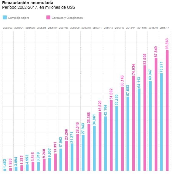 Desde 2002, el campo aportó por derechos de exportación un total de US$93.863 millones, según datos de la Sociedad Rural Argentina (SRA).