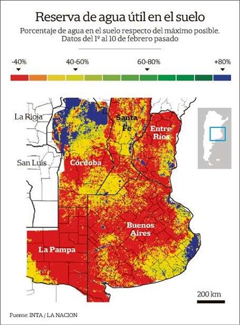 Ha habido entre domingo y lunes lluvias importantes en algunas zonas sin que el panorama general haya atemperado de verdad el drama agrícola que se prolonga desde 2017, con tierras que han padecido inundaciones y, curiosamente, poco después de haberlas superado, sequías. Ya a comienzos de año se señalaban pérdidas cuantiosas en maíces de los partidos bonaerenses de General Villegas, Coronel Dorrego, Adolfo Alsina, Ameghino y Maipú, por un lado, y en áreas de Córdoba, como Río Tercero y La Carlota, y de otras provincias, como Entre Ríos, Corrientes y Chaco, entre otras. Todo esto sumado a las altas temperaturas habidas en enero y lo que va de febrero y la coincidencia fatal, por decir lo menos, de heladas que afectaron plantaciones de Azul y de partes de la provincia de Córdoba.