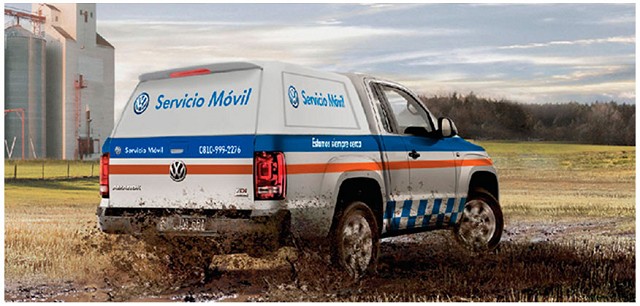 El Servicio Móvil está destinado a Clientes y Flotas Volkswagen que necesitan una solución a domicilio. Se trata camionetas Amarok 4×4 convertidas en un taller móvil que con un equipo de profesionales altamente calificados asisten a los clientes y hacen reparaciones a todos los vehículos de la marca Volkswagen.