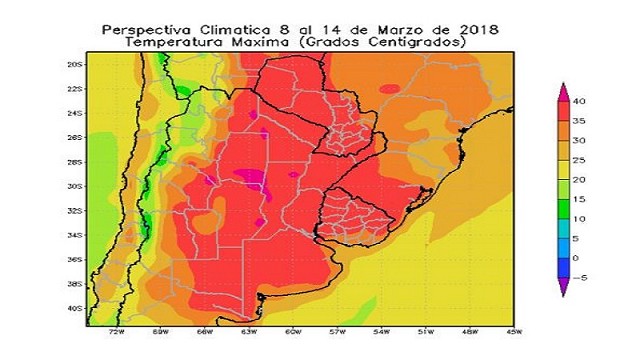 • El centro del NOA, el centro-este de Cuyo, el este de Buenos Aires y el sudeste del Uruguay, observarán temperaturas máximas entre 30 y 35°C.