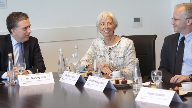 Luego de escuchar y tomar apuntes mientras Dujovne se refería al acuerdo con las provincias sobre la implementación de la ley de responsabilidad fiscal, Lagarde acotó que era "notable que hayan podido lograr esa relación con los estados". "Hay muchos países que tienen políticas fiscales robustas, pero tienen poco margen de control sobre las provincias. Es una gran lucha para ellos. Los quiero felicitar porque es algo notable", remarcó. La escuchaban, además del ministro, Ariel Sigal, jefe de Gabinete de Hacienda; Guido Sandleris, jefe de Asesores, y Laura Jaitman, representante del ministerio ante el G-20.