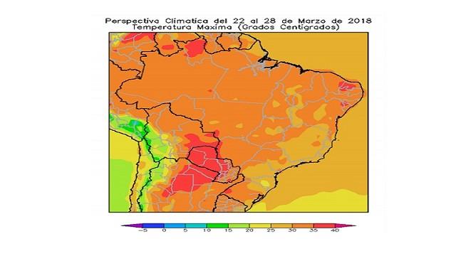temperatura en las zonas altas de Santa Catarina, Paraná y Río Grande do Sul, pero el norte y el oeste del área agrícola brasileña, seguirá bajo la influencia de una masa de aire tropical.
