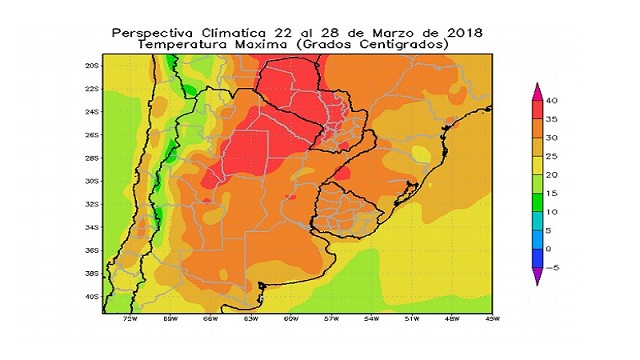 La perspectiva comenzará con vientos del nordeste, que provocarán un gradual aumento de la temperatura, aunque sin alcanzar valores extremos. Paralelamente, se producirá el avance de un frente de tormenta, que causará precipitaciones abundantes sobre el norte y el centro-norte del área agrícola, con su foco de mayor actividad sobre el norte de la Mesopotamia, el norte del NOA y el sudeste del Paraguay, donde se registrarán fuertes tormentas, mientras que el centro-sur y el sur el área agrícola recibirán valores escasos. Junto con el frente, los vientos rotarán hacia el sector sur / sudoeste, trayendo aire frío y seco a la mayor parte del área agrícola, con riesgo de heladas localizadas en partes de la Región Pampeana, el sur de la Mesopotamia y gran parte del Uruguay.