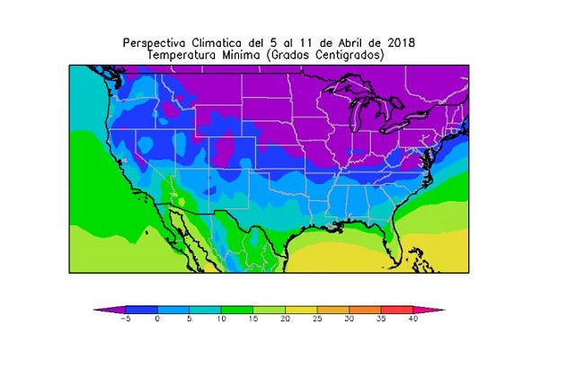 La perspectiva comenzará con temperaturas debajo de lo normal para la época, debido a una vigorosa masa de aire polar proveniente de las praderas canadienses, con riesgo de heladas en todo el norte y el centronorte del área agrícola norteamericana. Posteriormente, los vientos rotarán al sur, trayendo condiciones de tiempo seco con temperaturas máximas dentro de lo normal.