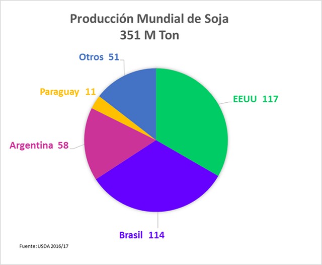 El 80% de la producción mundial de soja se concentra en tres países (EE.UU., Brasil y la Argentina) por lo que el gigante asiático no puede prescindir fácilmente de EE.UU. Un aumento de aranceles implicaría un aumento en sus precios domésticos.