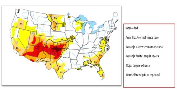 Oficialmente, se sabe ya que cerca de la mitad del territorio americano sufre algún grado de déficit hídrico. Es más, alrededor del 25% de la superficie total está entre condiciones de sequía, de severas a excepcionales.