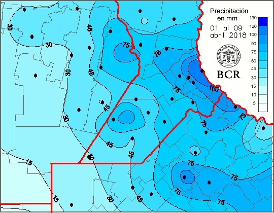 El promedio de lluvias de la región de estos primeros 9 días de abril es de 76 mm, mientras que para la totalidad del trimestre enero-marzo, el promedio fue de 158 mm. La localidad de Rosario fue la que recibió el mayor acumulado, 135 mm, superando ampliamente a los 95,4 mm totales que se contabilizaron en los tres primeros meses del año. Le sigue Maggiolo, con 127 mm acumulados en abril. Prevaleciendo también sobre los 106,4 mm que se registraron de enero a marzo. La única excepción la constituye Baradero. En abril llovieron 30 mm (registrados este fin de semana), mientras que en marzo se acumularon 67,4 mm.