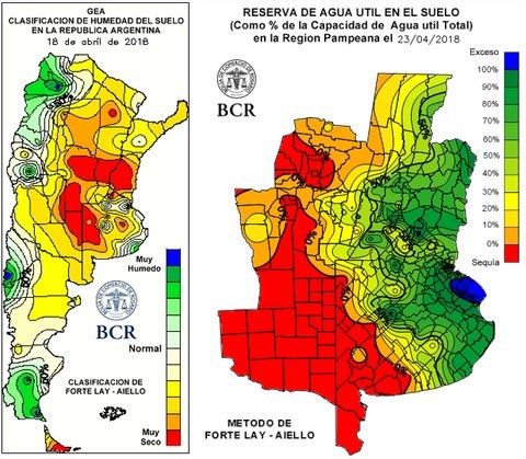 Hasta el miércoles 18 de abril, se insinuaban áreas de recuperación por las precipitaciones que se produjeron en el comienzo del mes. Se distinguía una pequeña zona del sur de Santa Fe junto al norte de Buenos Aires y sureste de Buenos Aires recomponiendo el almacenamiento de agua en los suelos. Pero en gran parte de Entre Ríos, Santa Fe, Buenos Aires, Córdoba y La Pampa no había cambios sustanciales. Por eso ya es historia, porque en estos últimos cuatro días de tormentas, la reserva de agua útil en el suelo presenta un cambio sustancial en el 65% de la región pampeana.