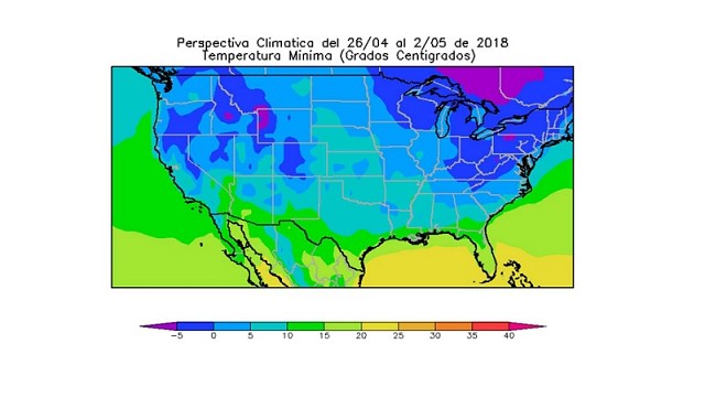 Desarrollo del pronóstico agropecuario de 26 de abril al 2 de mayo del 2018 para USA