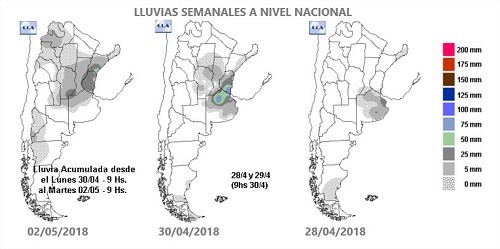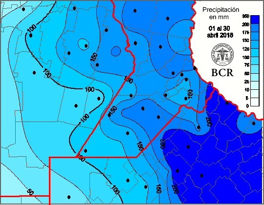 En tan solo 3 días del mes de mayo, los acumulados fueron de casi 200 mm en Rojas, 170 en Ramallo y 161 en Chacabuco. El sur santafesino no se queda atrás. Bigand acumuló 100 mm y Labordeboy 97 mm. El este cordobés y noroeste bonaerense están rezagados, con milimetrajes que rondan entre 15 y 60 mm. Este volúmen se suma al que dejó el mes de abril. El noreste bonaerense fue el área que registró las mayores precipitaciones del mes. Ramallo terminó con lluvias del orden de los 250 mm, y es la localidad con el mayor milimetraje acumulado en el año: 547 mm. En el este cordobés hubo una gran variabilidad de datos: desde 65 mm en Colonia Almada, hasta 170 mm en Monte Buey. Los pronósticos indican que los milimetrajes seguirán sumando en los días que siguen. Las lluvias continuarán hasta el martes 8/5.