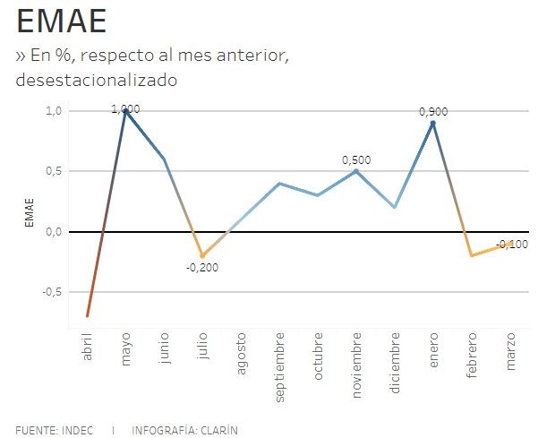 De acuerdo con el informe oficial, en marzo, tomando la comparación interanual, de los 15 sectores se registraron cinco con menor actividad económica, mientras que el resto mostró números positivos, pero en desaceleración.