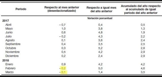 De esta manera, con relación a un año atrás, en marzo el nivel de actividad se ubicó tan solo un 1,4% por encima de igual mes de 2017, cuando entre enero y febrero el crecimiento había alcanzado el 4,6%. Ahora, en los primeros tres meses la actividad tuvo una expansión del 3,5%, de acuerdo a los datos del Indec..