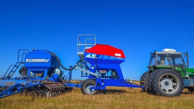En ese rumbo es que aparece el acoplado que, mediante el uso de un flujo de aire a presión, alimenta la tolva de la sembradora sin detener el equipo.